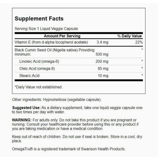 Swanson Black Cumin Seed Oil | Black Seed Oil | Total Body Wellness | Source of Omega-6 & 9 | 60 Capsules Exp 11/2025
