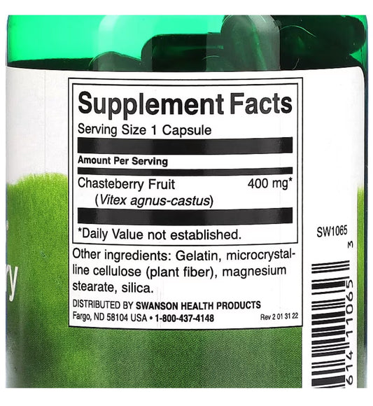 Swanson Chasteberry Fruit (Vitex) 400mg 120 Capsules; Exp 01/2027