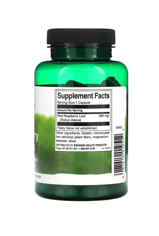 Swanson Red Raspberry Leaves 380mg | 50-100 Servings | 100 Capsules; Exp 10/2025