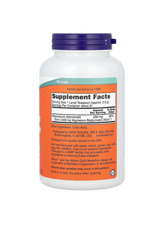 NOW Magnesium Bisglycinate Powder (Magnesium Glycinate) 250mg | Nervous System Support | 91 Servings | 8oz /227g Exp 06/2027