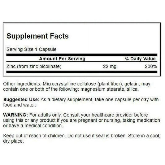 Swanson Zinc Picolinate 22mg | Supports Hormone Health | Boosts Immune System | 60 Capsules; Exp 04/2028
