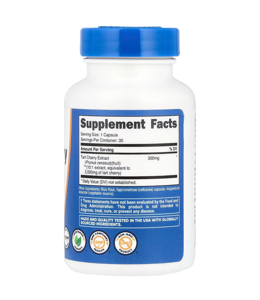 Nutricost Tart Cherry 3,000mg | Anti-Inflammatory | Immune Support | Improves Sleep Quality and Duration | 30 Capsules; Exp 08/2027