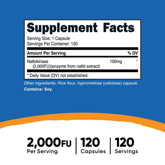 Nutricost Nattokinase 2,000FU | Promotes Healthy Blood Flow and Circulation | 120 Capsules; Exp 02/2028