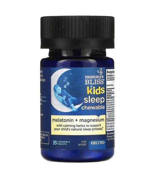 Mommy's Bliss Kids Sleep Chewable | For Kids Age 3 & Above | 35 Servings | Contains Melatonin, Magnesium & Calming Herbs | Sugar Free | Grape Flavor ~ 35 Chewable Tablets; Exp 01/2026