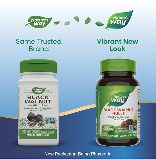 Nature's Way Black Walnut Hulls 900 mg per 2-Capsule Serving | Traditional Digestive Tract Tonic | 100 Capsules; Exp 11/2029