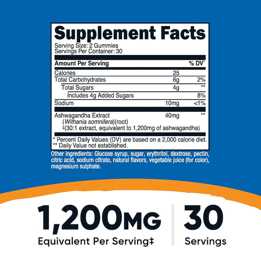Nutricost Ashwagandha 600 mg | 30/60 Servings | Stress Support | 60 Gummies; Exp 02/2028