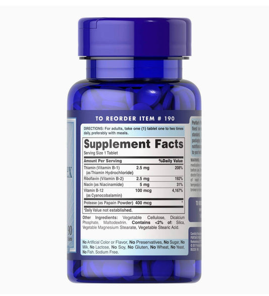 Puritan's Pride Vitamin B-Complex and Vitamin B12 | For Energy Metabolism, Improved Nerve Function and DNA Synthesis | 90 Tablets; Exp 07/2027