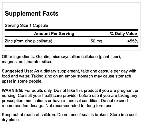 Swanson Extra Strength Zinc Picolinate 50mg | Supports Hormone Health | Boosts Immune System | 60 Capsules; Exp 03/2027