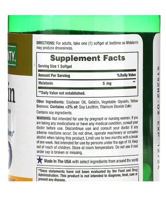 Nature's Bounty Melatonin 5mg | Promotes Relaxation & Sleep | 100% Drug-Free Sleep Aid | 90 Softgels; Exp 03/2026
