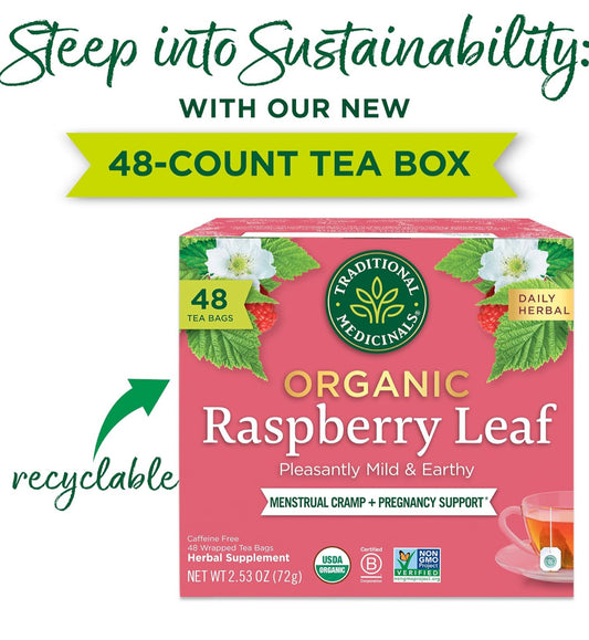 Traditional Medicinals Organic Raspberry Leaf Tea | Eases Menstrual Cramps & Supports a Healthy Pregnancy | 48 Tea Bags; Exp 03/2027