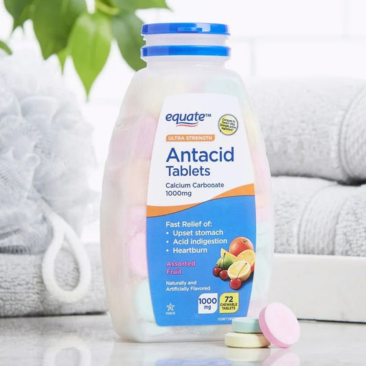 Equate Ultra Strength Antacid Calcium Carbonate 1000mg | Fast Relief of Upset Stomach, Acid Indigestion, Heartburn | ๐๐ฌ๐ฌ๐จ๐ซ๐ญ๐๐ ๐ ๐ซ๐ฎ๐ข๐ญ Flavor ~ 72 Chewable Tablets; Exp 04/2027