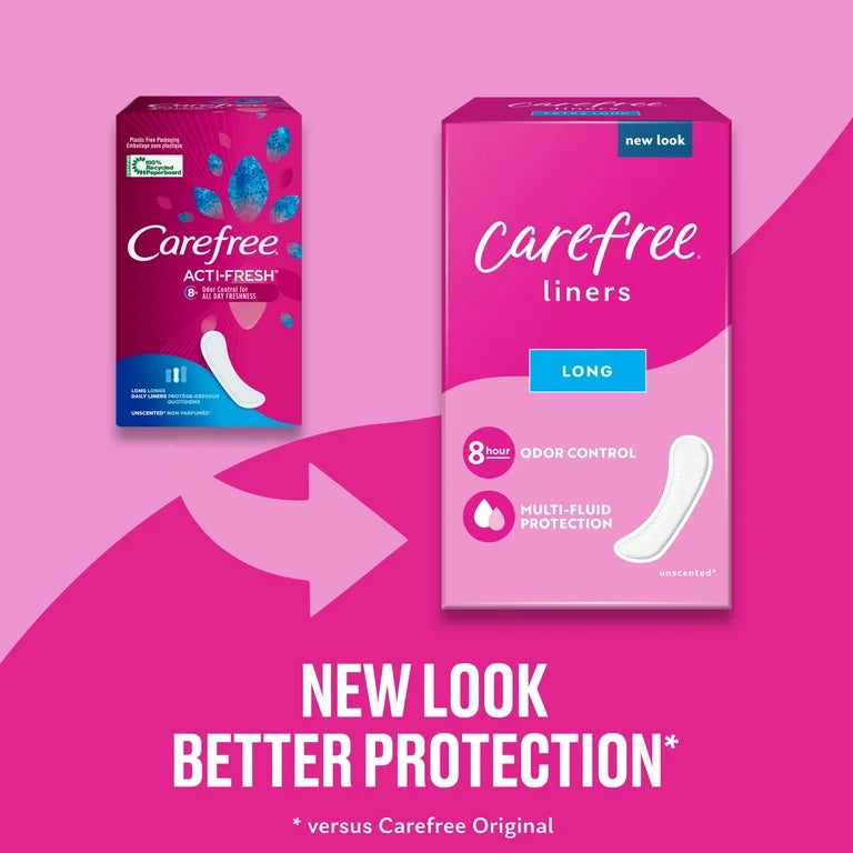 - NEW LOOK, BETTER PROTECTION โ The Carefree liner you know and love, with a whole new look. 2x more absorbent vs. Carefree Original liners. Packaging may vary.