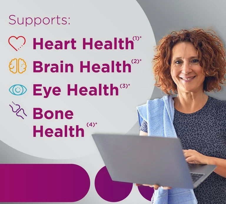 - Specially formulated multivitamin/multimineral supplement that support the heart, brain, eyes and overall health of women age 50+