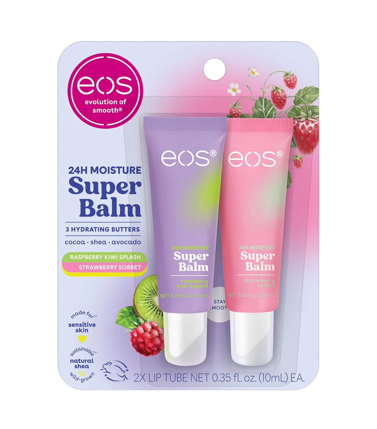 Eos 24HR Moisture Super Balm | Raspberry Kiwi Splash & Strawberry Sorbet Lip Balm Flavours | 0.35 fl oz, 2 Pack