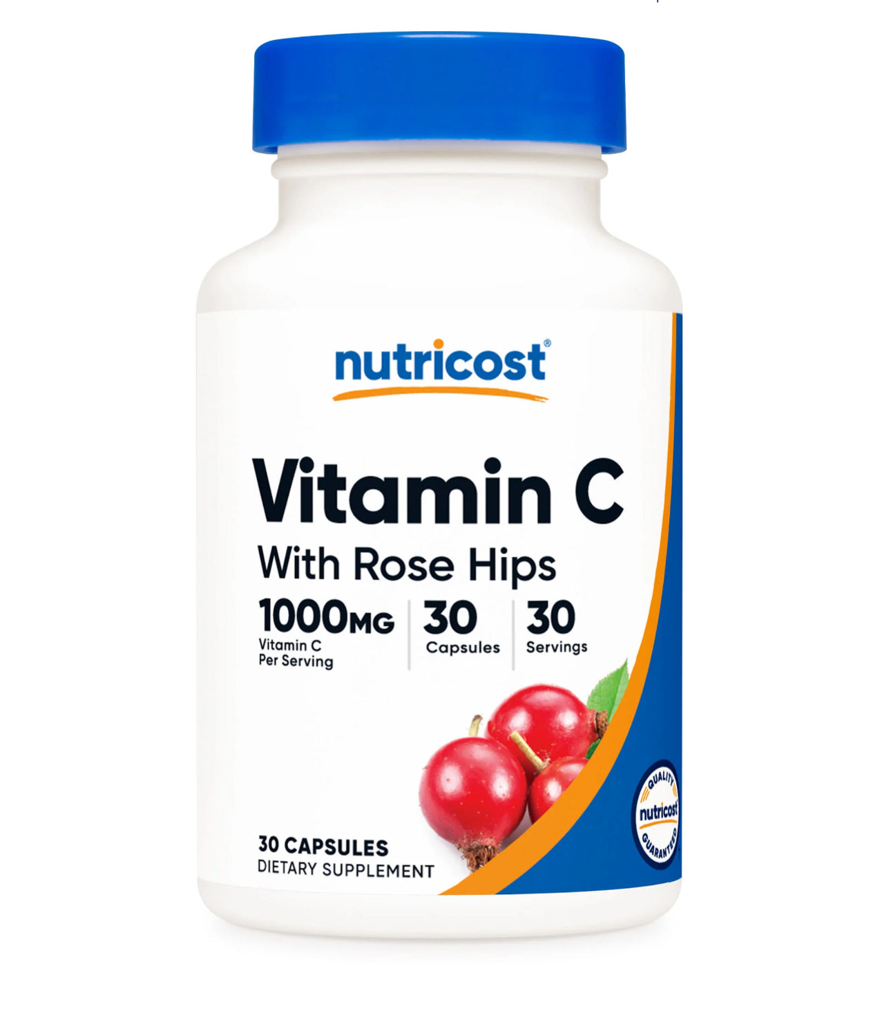 Nutricost Vitamin C 1000mg with Rose Hips | Powerful Antioxidant | Boosts Immune Health | 30 Capsules; Exp 07/2027