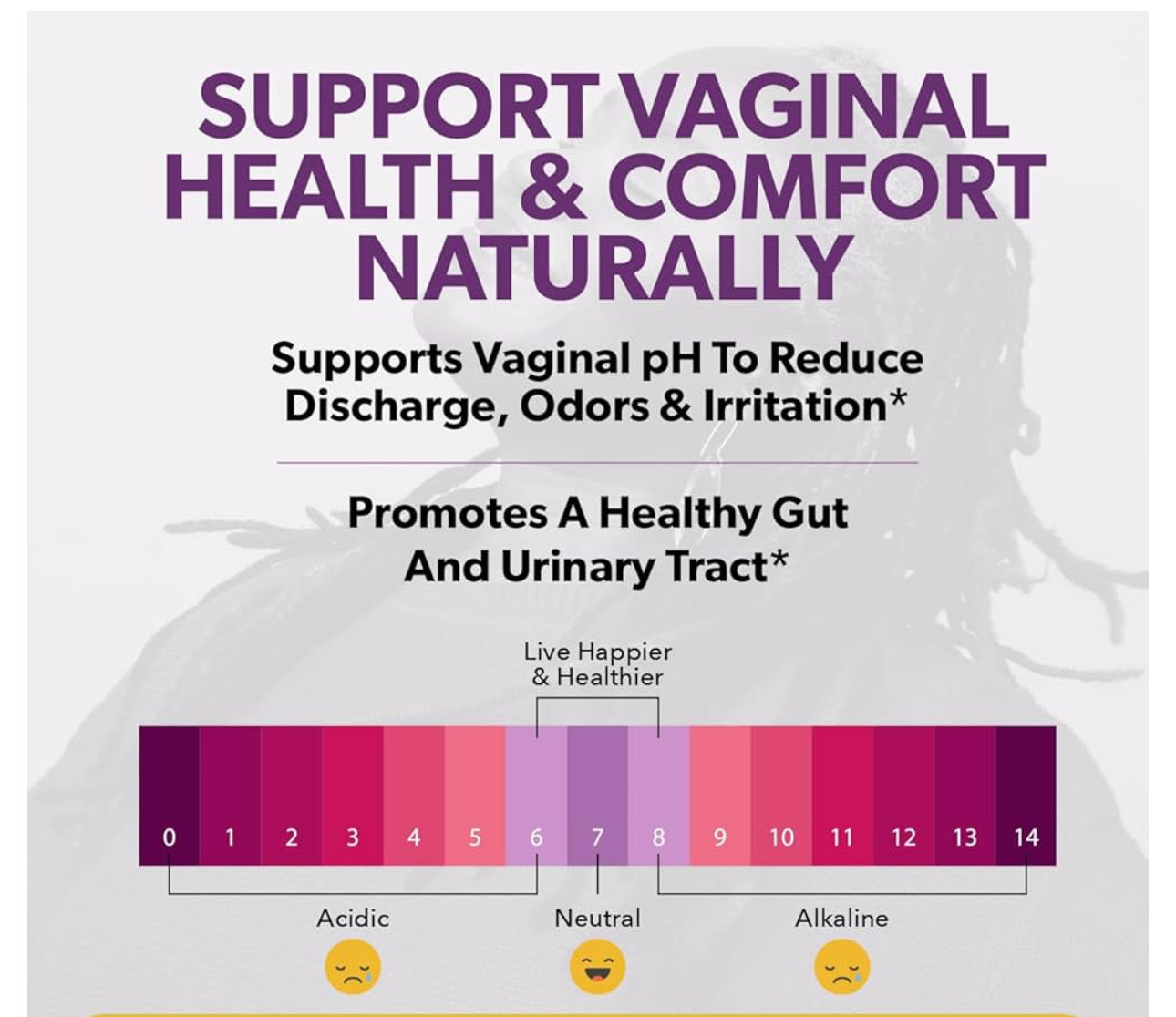 - Supports Vaginal pH for Odors and Infection Caused by BV