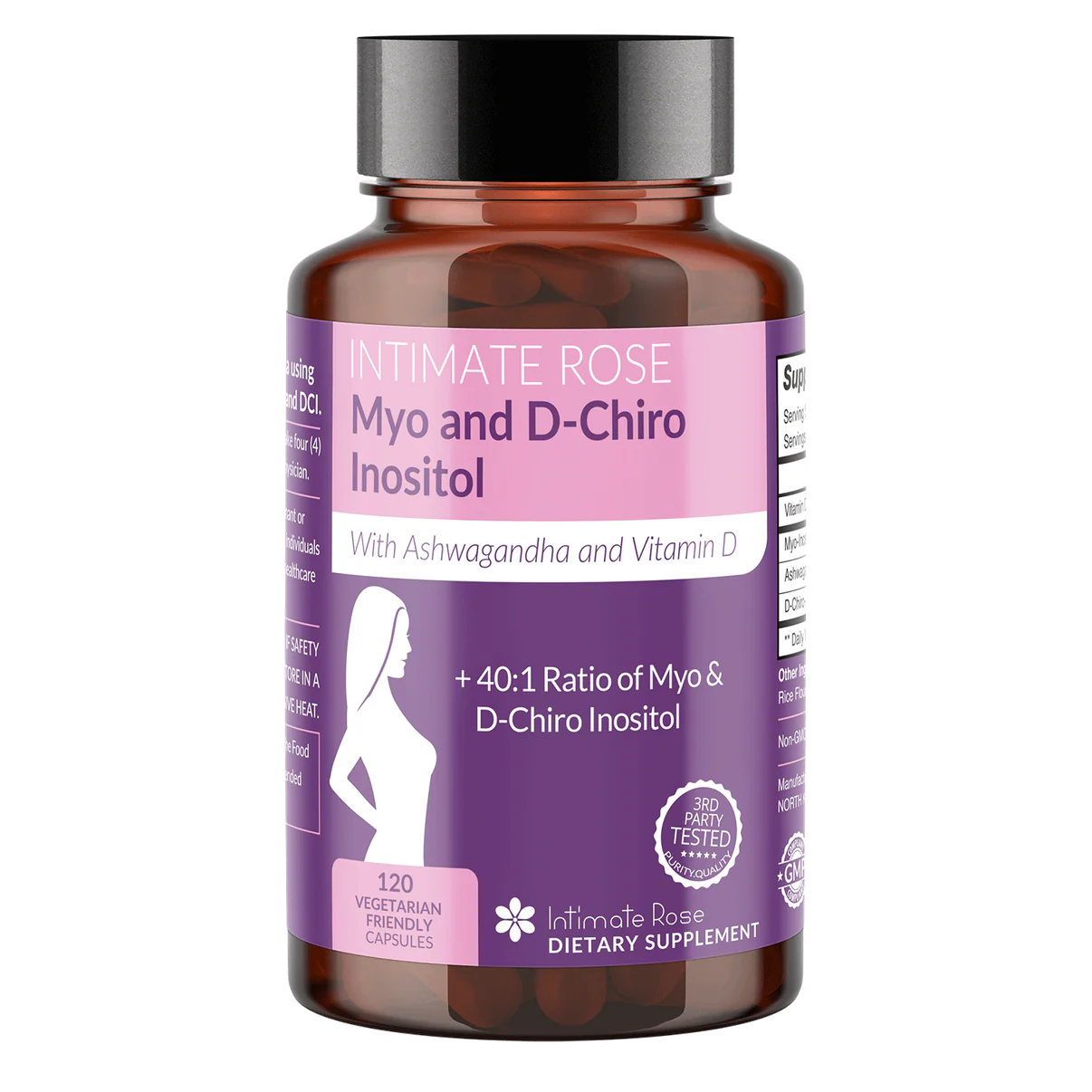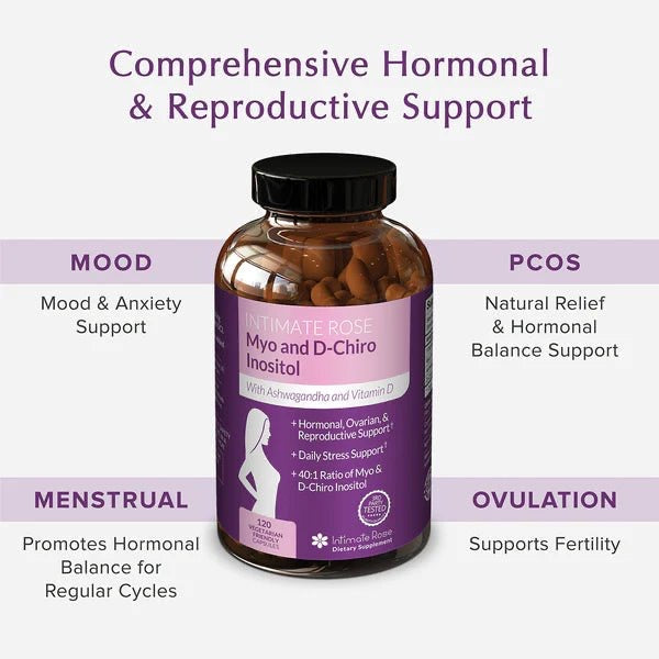 Intimate Rose Myo and D-Chiro Inositol with Ashwagandha and Vitamin D | 40:1 Ratio of Myo & D-Chiro Inositol | Hormonal, Ovarian & Reproductive Support | 120 capsules; Exp 02/2027 (New Look)