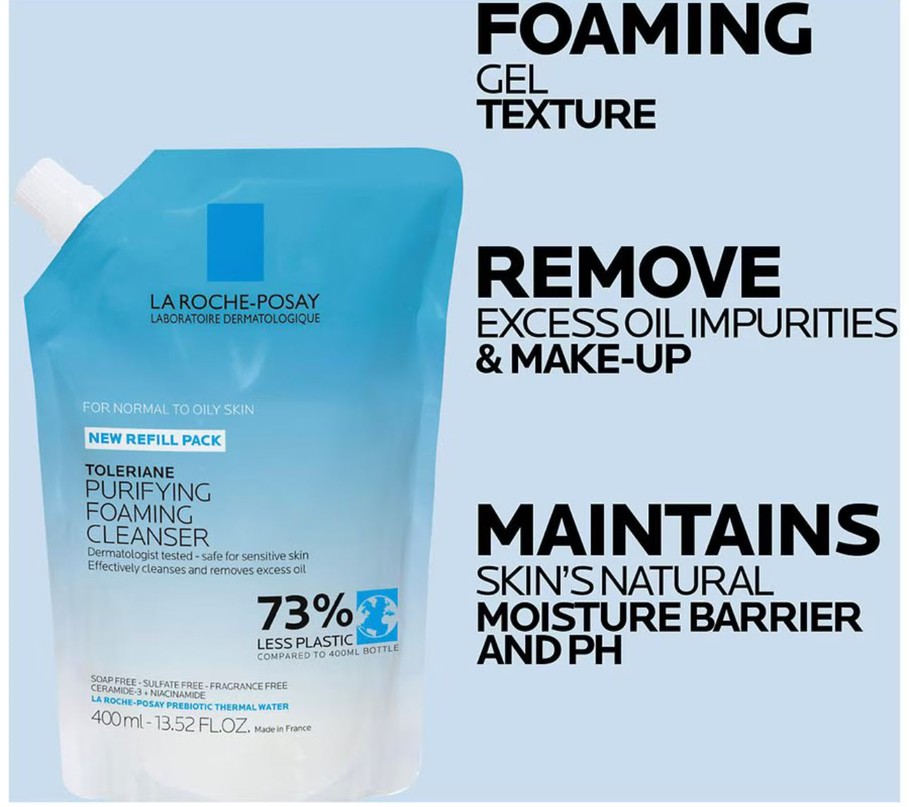 La Roche-Posay Toleriane Purifying Foaming Facial wash | for Normal, Oily and Sensitive Skin | 400ml Refill Pack