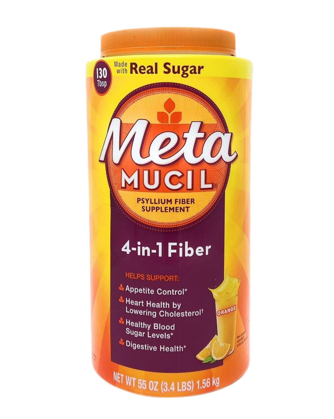 Metamucil Psyllium 4-in-1 Fiber Powder with Real Sugar | 130 Tablespoons | Supports Heart Health, Healthy Blood Sugar Levels | Appetite Suppressant | 65/130 Servings | Orange Flavor~55oz/1.56kg; Exp 07/2027