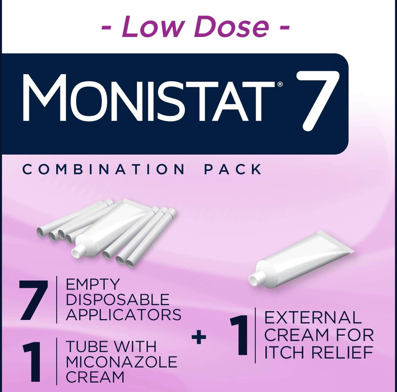 Monistat 7-Dose Combination Pack Yeast Infection Treatment is the number 1 gynecologist-recommended brand for over the counter treatments for yeast infections. Designed with busy women in mind, the disposable vaginal applicator is safe and easy to use with a low dose treatment that is evenly distributed each night throughout the week. Each cream dose contains 100 mg of miconazole nitrate for nighttime use to fight symptoms of yeast infections fast, so you donโt have to slow down or interrupt your busy schedule. Whether youโre working out at the gym or hustling at work, you can rely on Monistatโs 7 Day Treatment. For maximum comfort as quickly as possible, combine Monistatโs 7 Day Treatment with Monistat Instant Itch Relief Cream. Combined with aloe vera for maximum relief, Monistatโs antifungal cream contains 1% hydrocortisone to help relieve intense vaginal itch fast. Get relief from the itchiness, odor, and irritation of a yeast infection with this anti-itch cream. Monistat 7 Day Treatment starts working right at the site of infection to fight the 5 most common types of yeast infections.