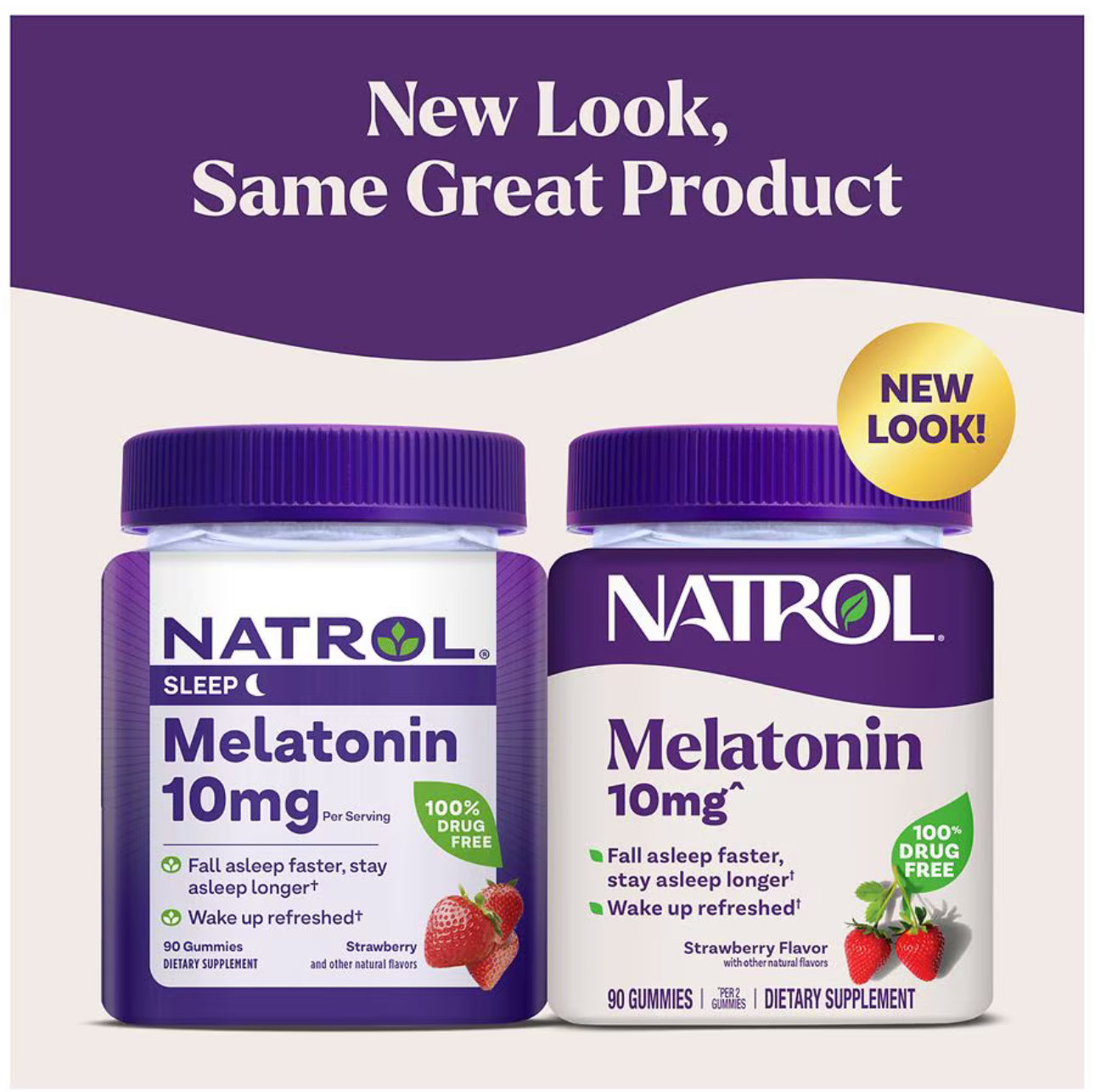 Natrol 10mg Melatonin Sleep Aid Gummies | 45/90 Servings | Fall Asleep Faster & Stay Asleep Longer | Strawberry Flavor~90 Gummies; Exp 08/2026
