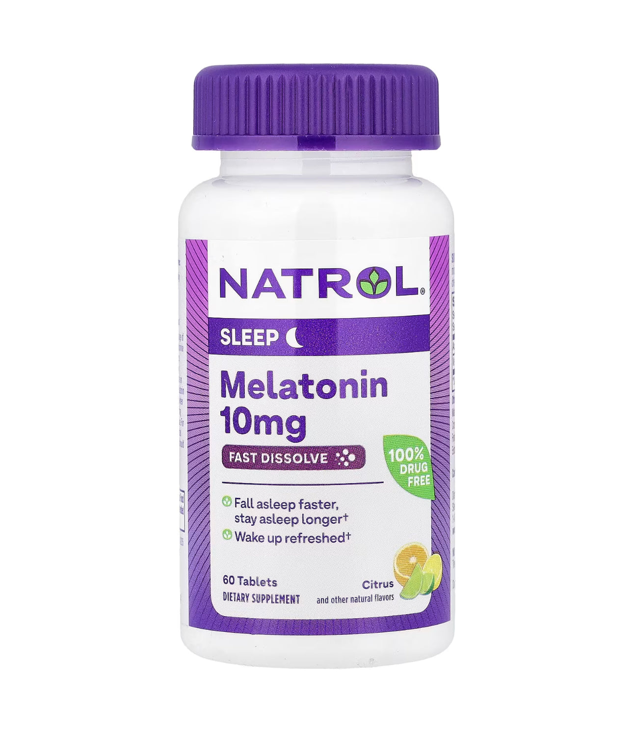 Natrol Fast Dissolve Melatonin 10 mg tablets are sleep support for adults that offer a convenient and easy-to-take option to help with occasional sleeplessness. This adult melatonin nighttime sleep aid supplement is 100% drug-free, and non-habit forming. Natrol melatonin supplements for sleeping offer 10 mg of melatonin per serving, providing the sleep support you need to fall asleep faster and stay asleep longer. Natrol Melatonin fast dissolve tablets promote sleep in as little as 15 minutes. Natrol's fast dissolving, vegetarian sleep supplements formula with great-tasting strawberry flavor make these sleep aid tablets convenient to take before bed. Suggested Use: Adults, take one melatonin 10 mg fast dissolve tablet 30 minutes before bedtime. Dissolve in mouth or chew before swallowing. No water necessary. Natrol is dedicated to creating innovative, quality products, to help you maintain good health and thrive in your busy, modern lifestyleย