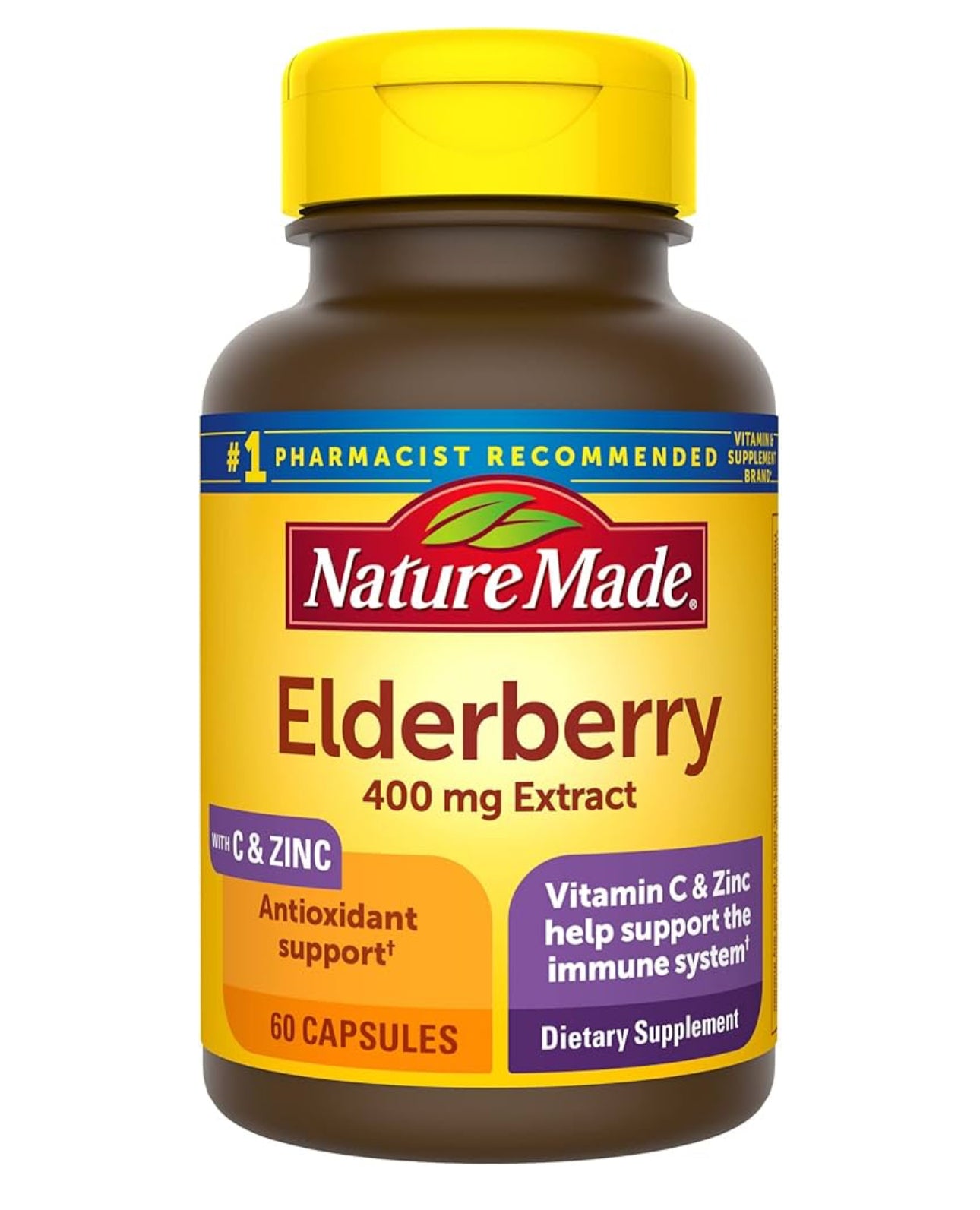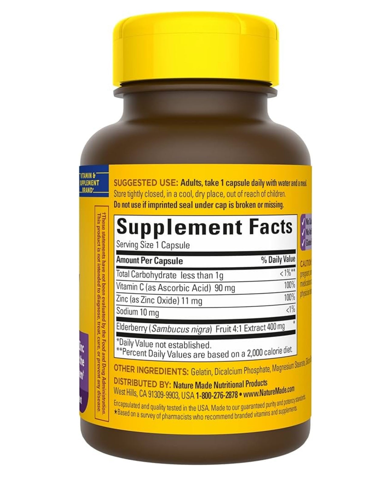 - Nature Made Elderberry capsules for adults also contain Vitamin C and Zinc for immune support