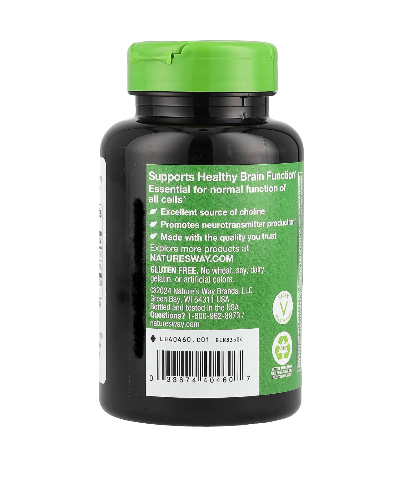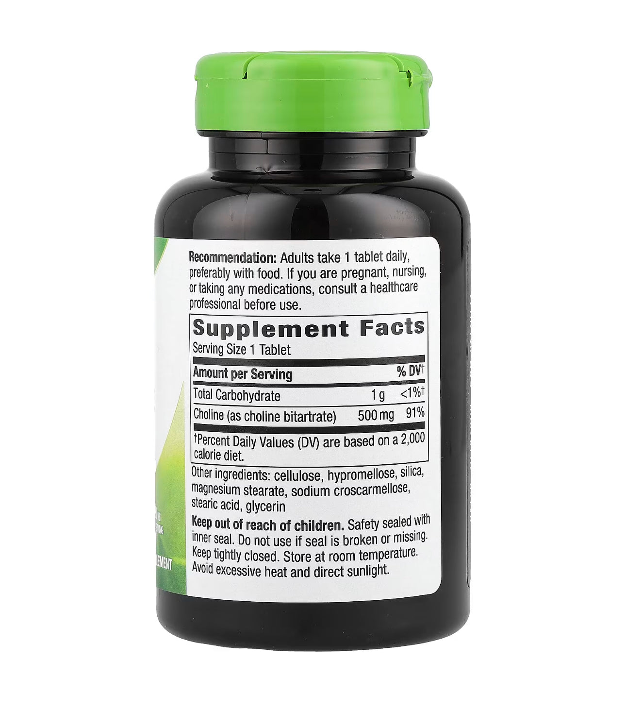 Nature's Way Choline 500mg (Choline Bitartrate) | Supports Healthy Brain Function | 100 Tablets; Exp 11/2027