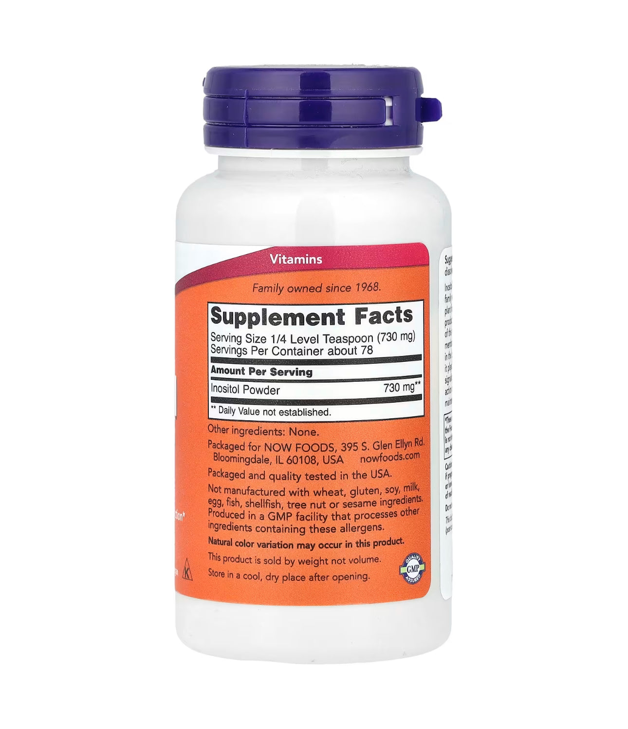 NOW Pure Inositol Powder | 730mg Myo-Inositol Per Serving | 78 Day Supply | Supports Healthy Membrane Function & Neurotransmitter Signaling | Cellular Health | 2oz/57g; Exp 08/2028