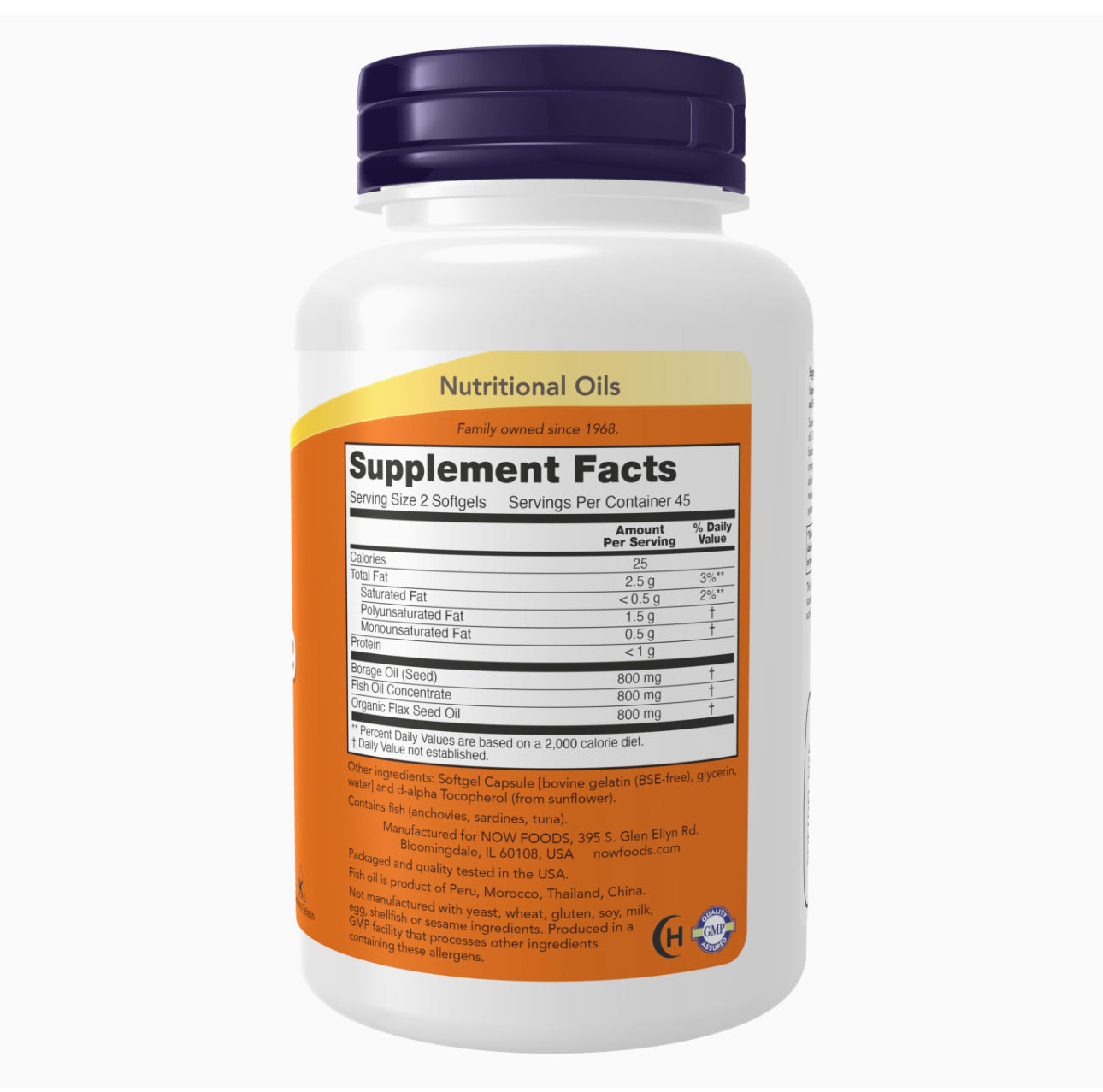 NOW Super Omega 3-6-9 Fish Oil 1200mg | with Borage and Flax Seed Oils | Supports Cardiovascular Health | For Maintenance of Healthy Skin, Normal Immune System Balance & Proper Nervous System Function | 90 Softgels; Exp 05/2027