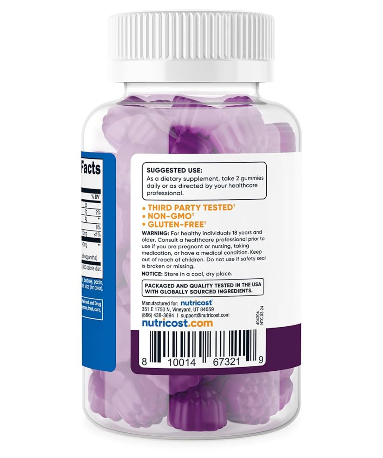 Nutricost Ashwagandha 600 mg | 30/60 Servings | Stress Support | 60 Gummies; Exp 02/2028