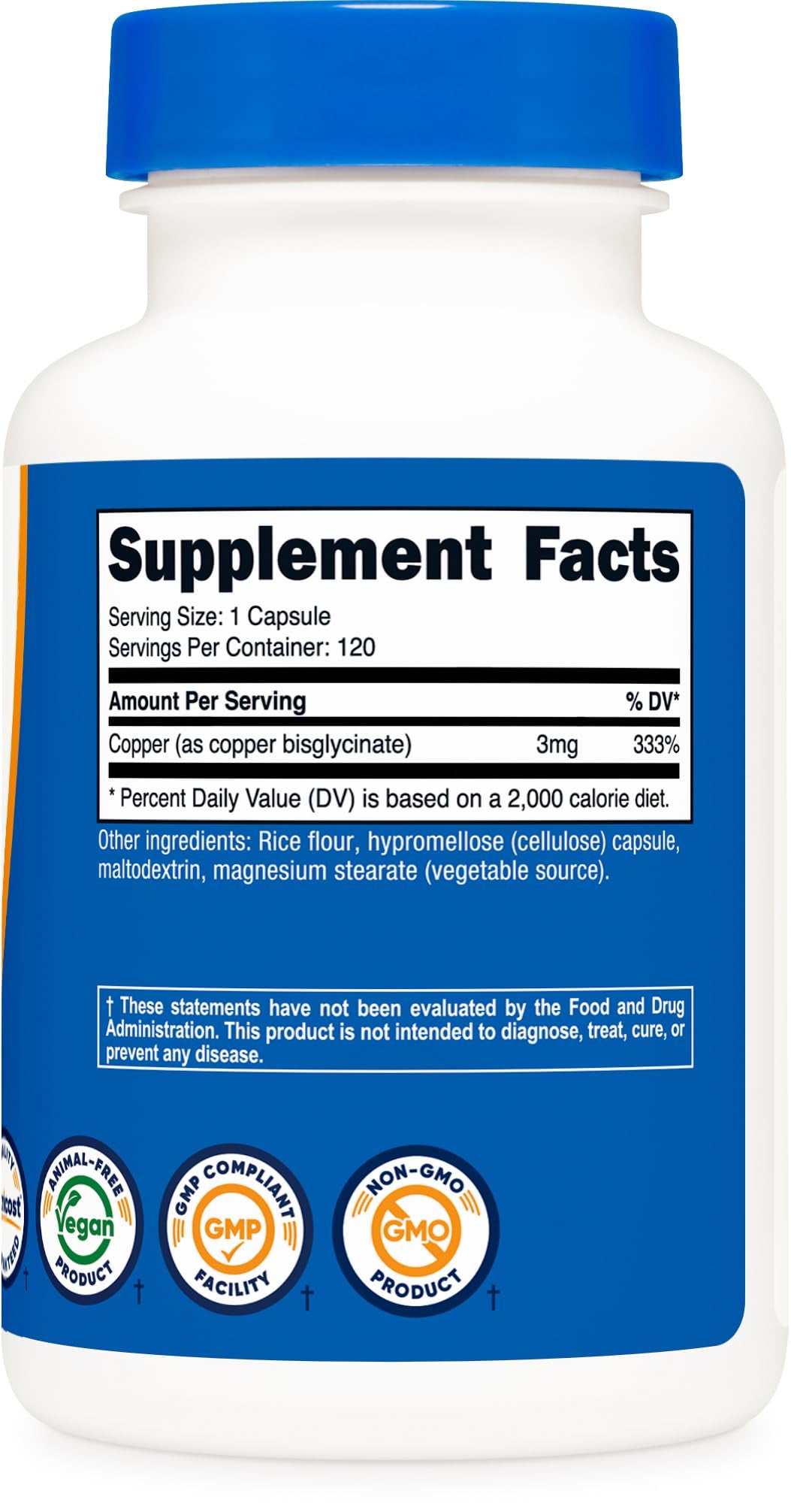 Nutricost Copper Glycinate 3mg | Promotes Structural Health | Essential Trace Mineral | Involved in Connective Tissue Synthesis & Neurotransmitter Production | 120 Tablets; Exp 08/2027