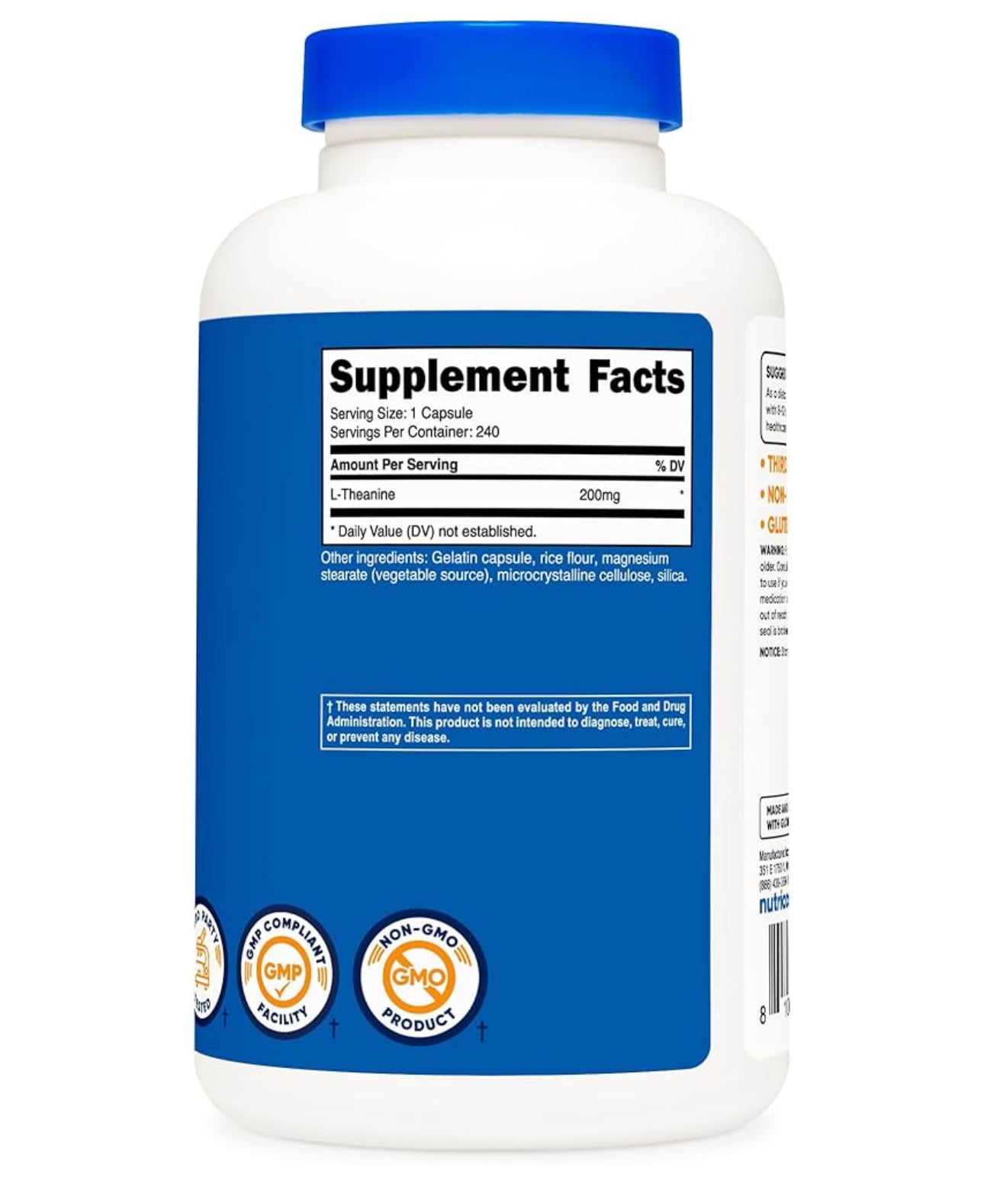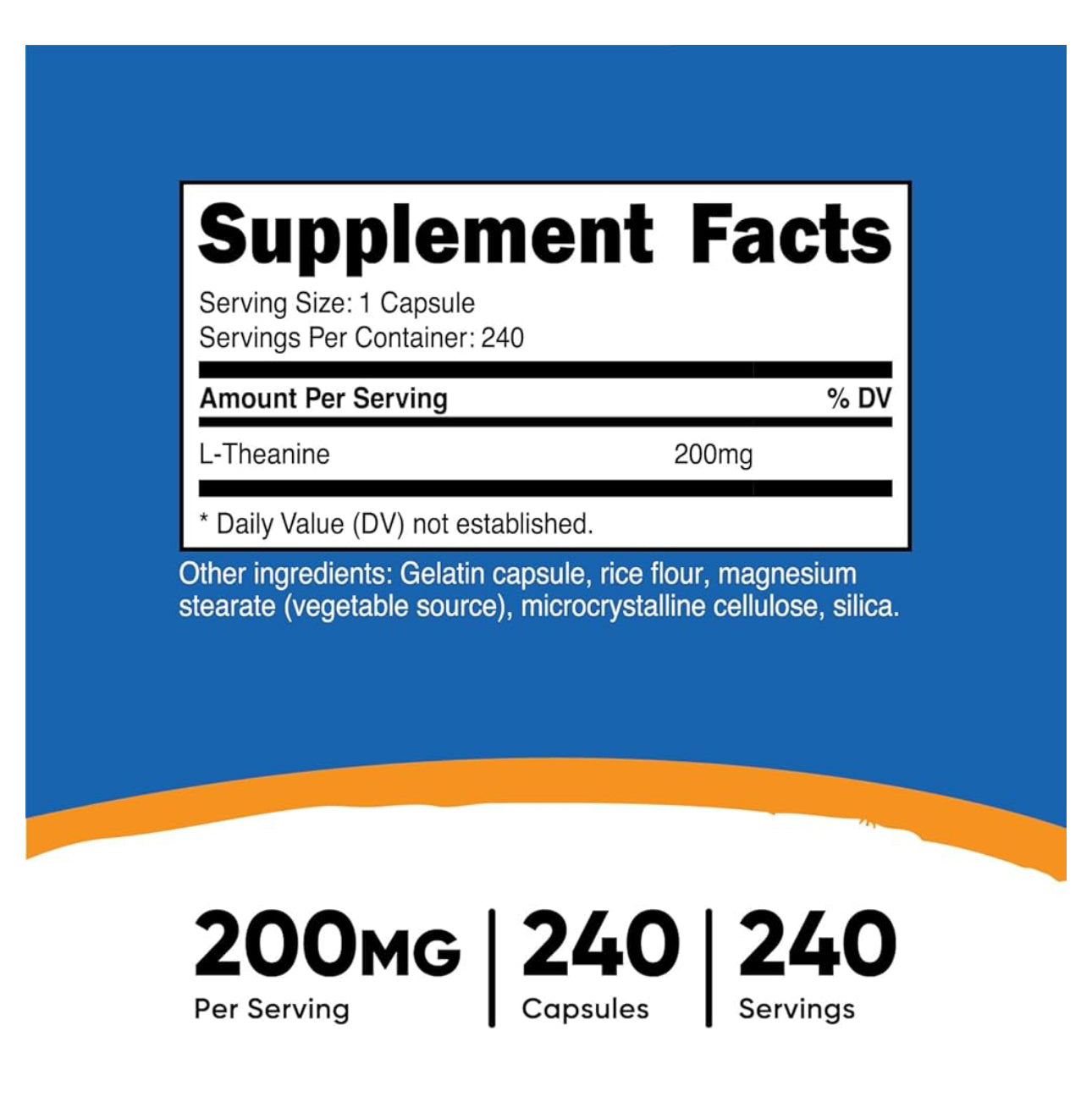 Nutricost L-Theanine 200mg Double Strength | 240 Servings | Stress Management | Promotes Relaxation & Healthy Vascular Function | 240 Capsules; Exp 04/2027