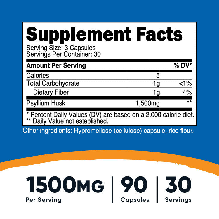 Nutricost Psyllium Husk Capsules 1500mg | 500mg per Capsule | Promotes Digestive Health | Promotes Bowel Regularity | 90 Capsules; Exp 08/2027