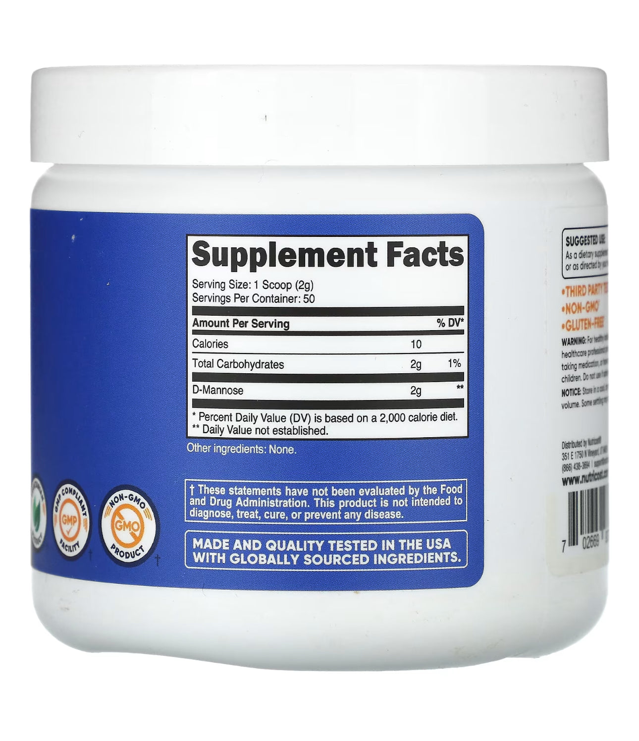 Nutricost Pure D-Mannose Powder, 2000mg Per Serving | Supports Bladder & Urinary Tract Health | Cleanses the Bladder | For Men and Women | Unflavored ~ 100g/3.6oz; Exp 07/2027