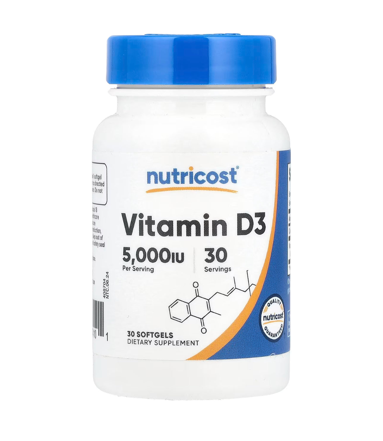 Nutricost Vitamin D3 5000iu (125mcg) | Supports Immune, Bone and Hormonal Health | 30 Softgels; Exp 07/2027