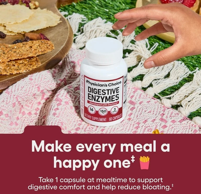 Physician's Choice Digestive Enzymes | Multi Enzymes, Organic Prebiotics & Probiotics for Digestive Health & Gut Health | Relief from Meal Time Discomfort & Bloating | For Men and Women | 30 Capsules; Exp 02/2027