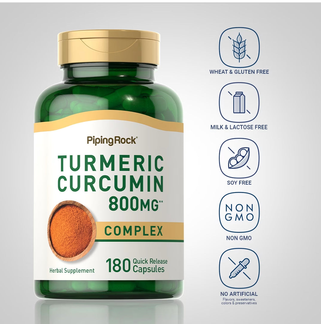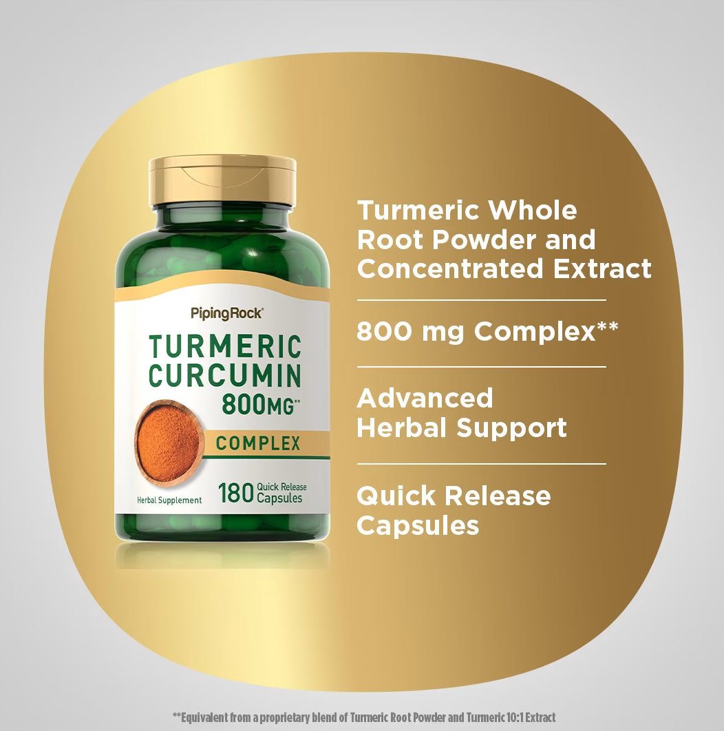 PipingRock Turmeric Curcumin 800mg | 800mg per Capsule | Anti-Inflammatory | 180 Capsules; Exp 09/2026