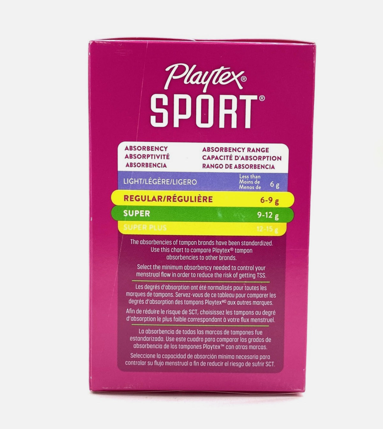 - Includes 18 regular & 18 super tampons for a total 36 pack of unscented Playtex Sport tampons