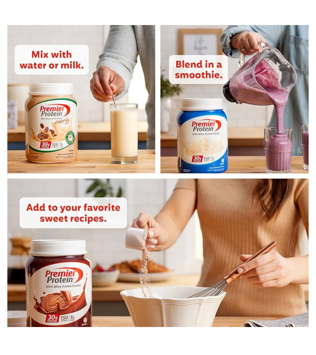 - Try it mixed with water or milk, blended into your favorite smoothie recipe, or baked into protein packed recipes