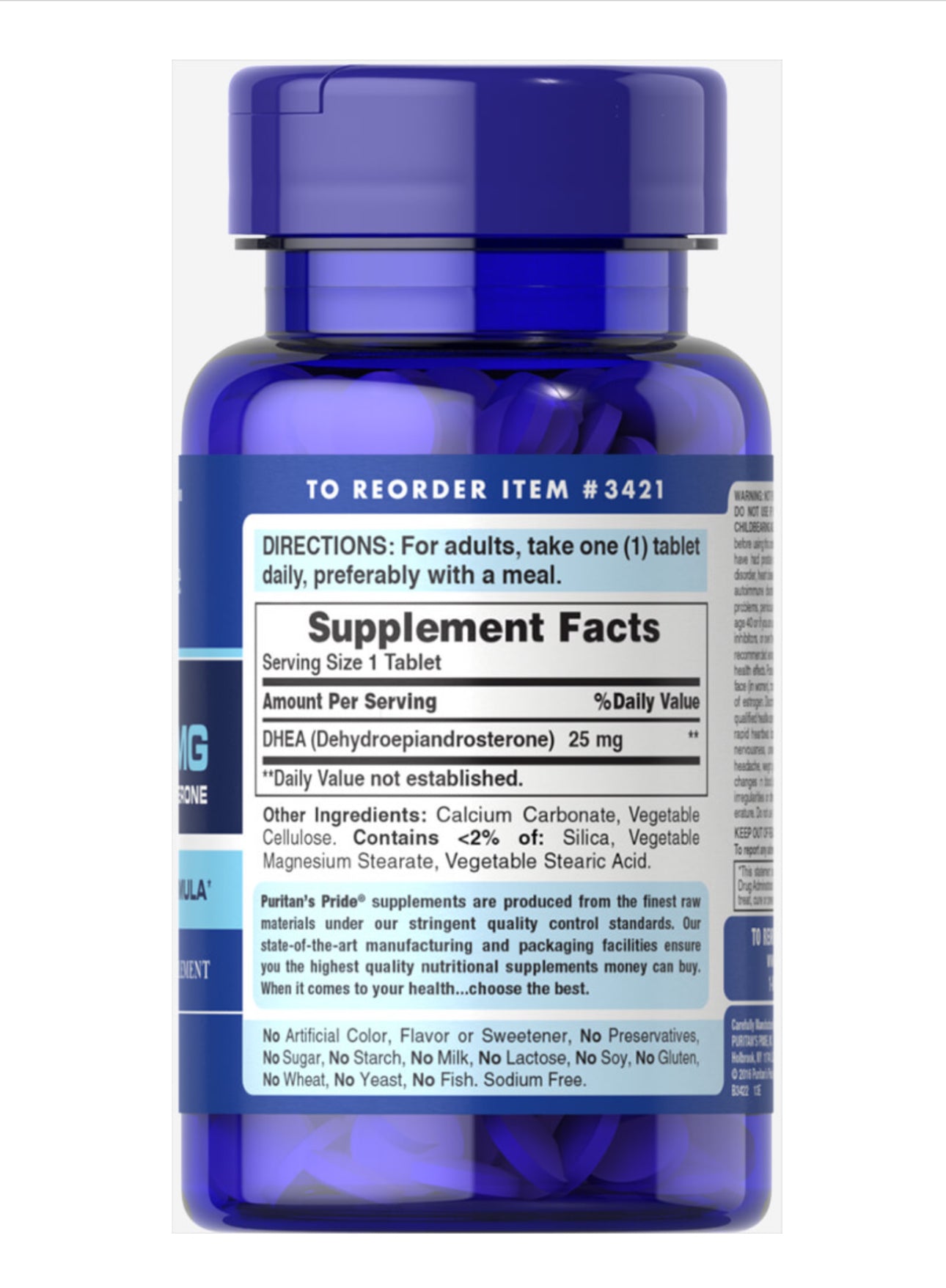 Puritan’s Pride DHEA 25 mg (Dehydroepiandrosterone) | Optimizes the Immune System | For Energy Support & Healthy Aging | 100 Capsules; Exp 06/2027