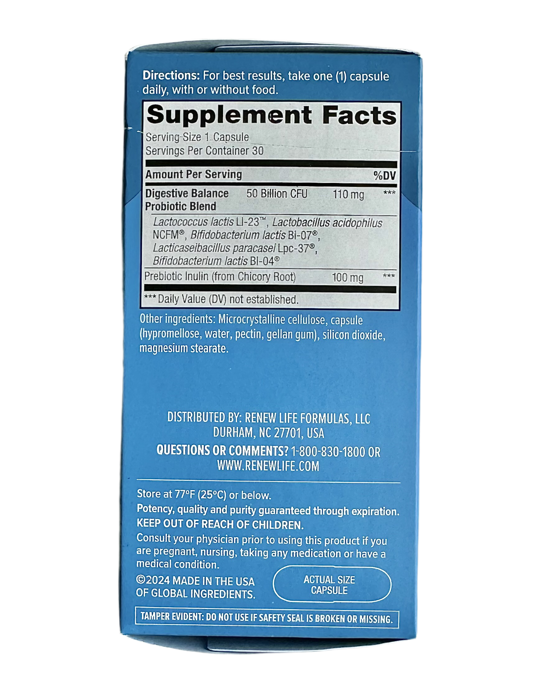 RenewLife Mood Probiotic 50 Billion CFUs | plus Prebiotic | Promotes Calmness & Digestive Balance | 30 Vegetarian Capsules Exp 07/2026