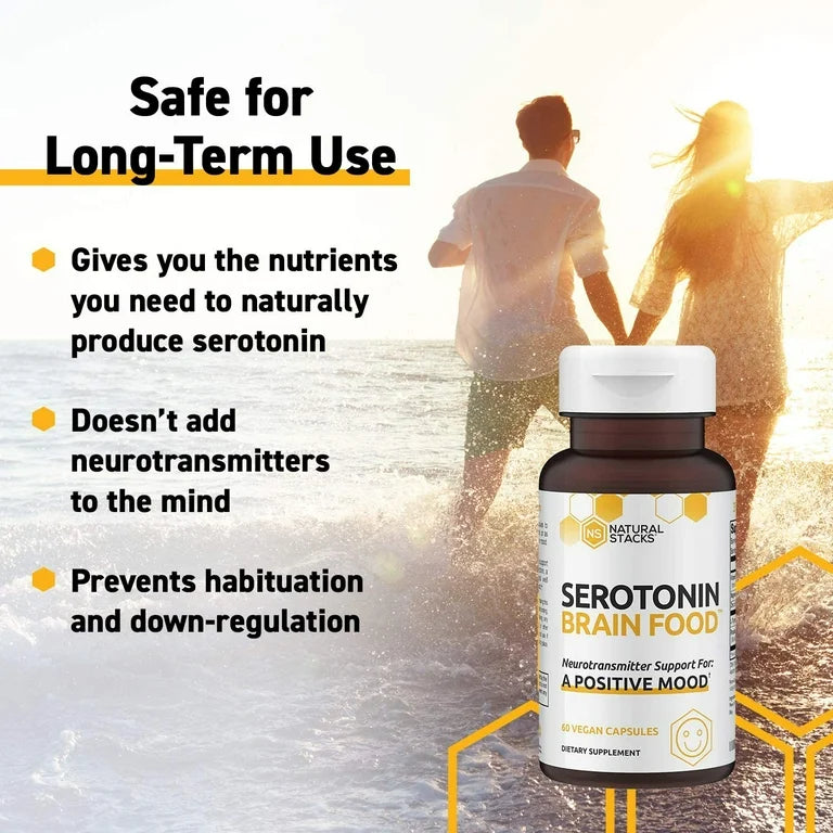 By aiding the body’s serotonin production, Serotonin Brain Food is non-addictive and remains effective even with long-term use.