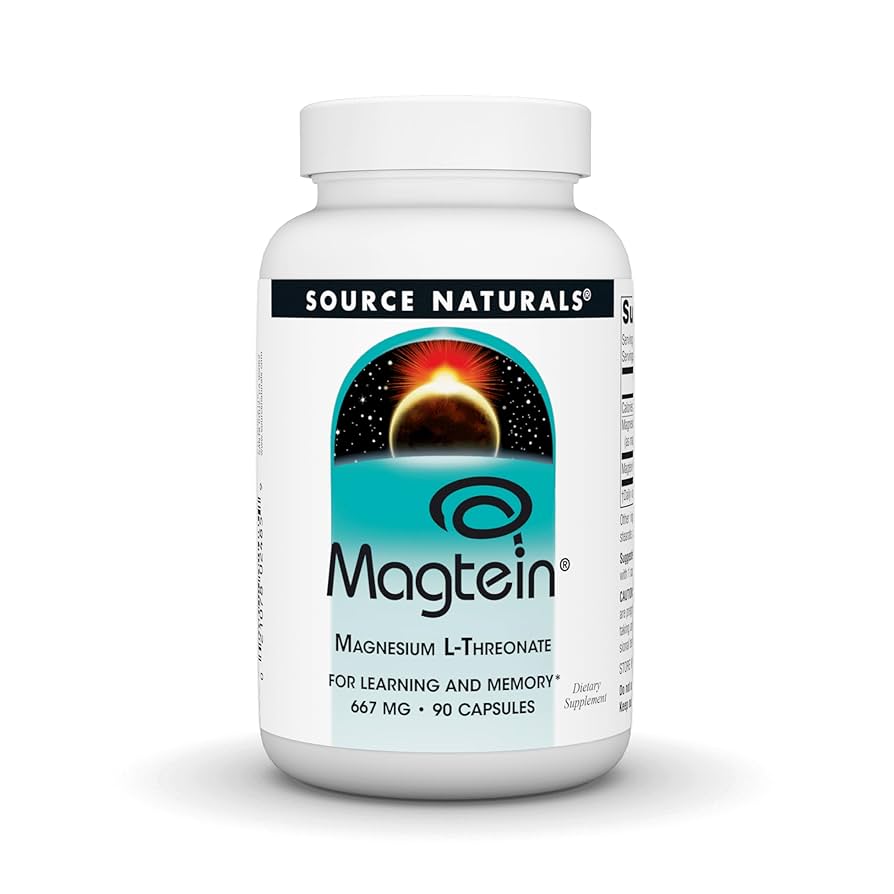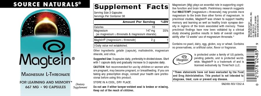 Source Naturals Magtein Magnesium L-Threonate 667mg | Supports Focus, Focus, Mood, Healthy Memory, Cognitive Function - 90 Capsules; Exp 12/2028