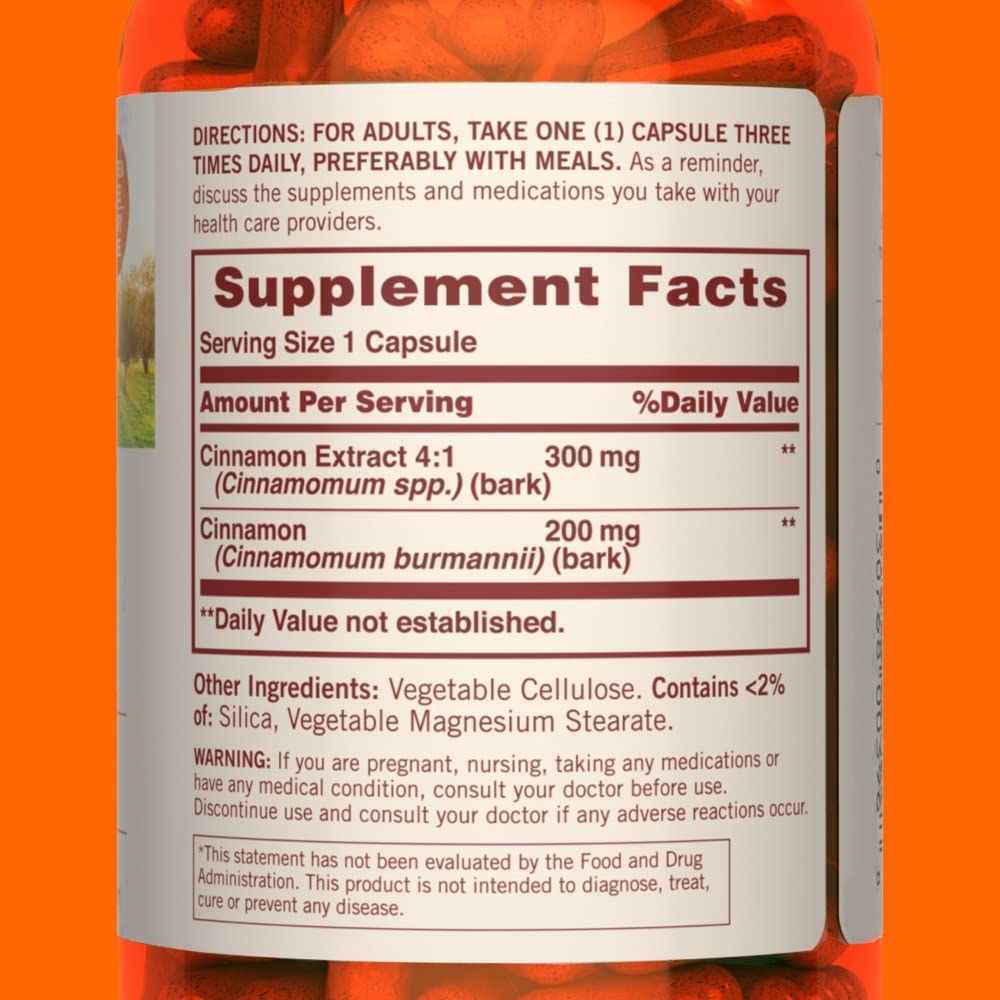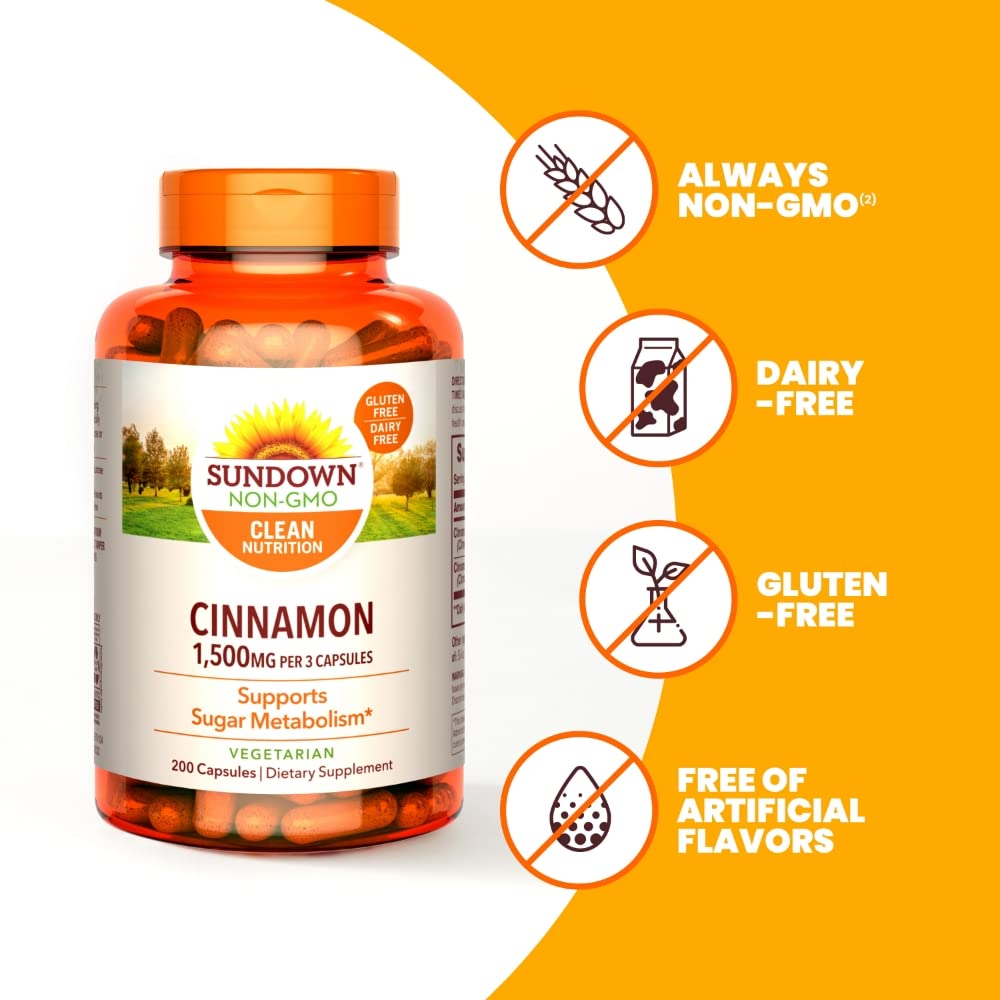 Sundown Cinnamon 1500mg | 3 Month Supply | Supports Sugar Metabolism | 200 Capsules; Exp 01/2026