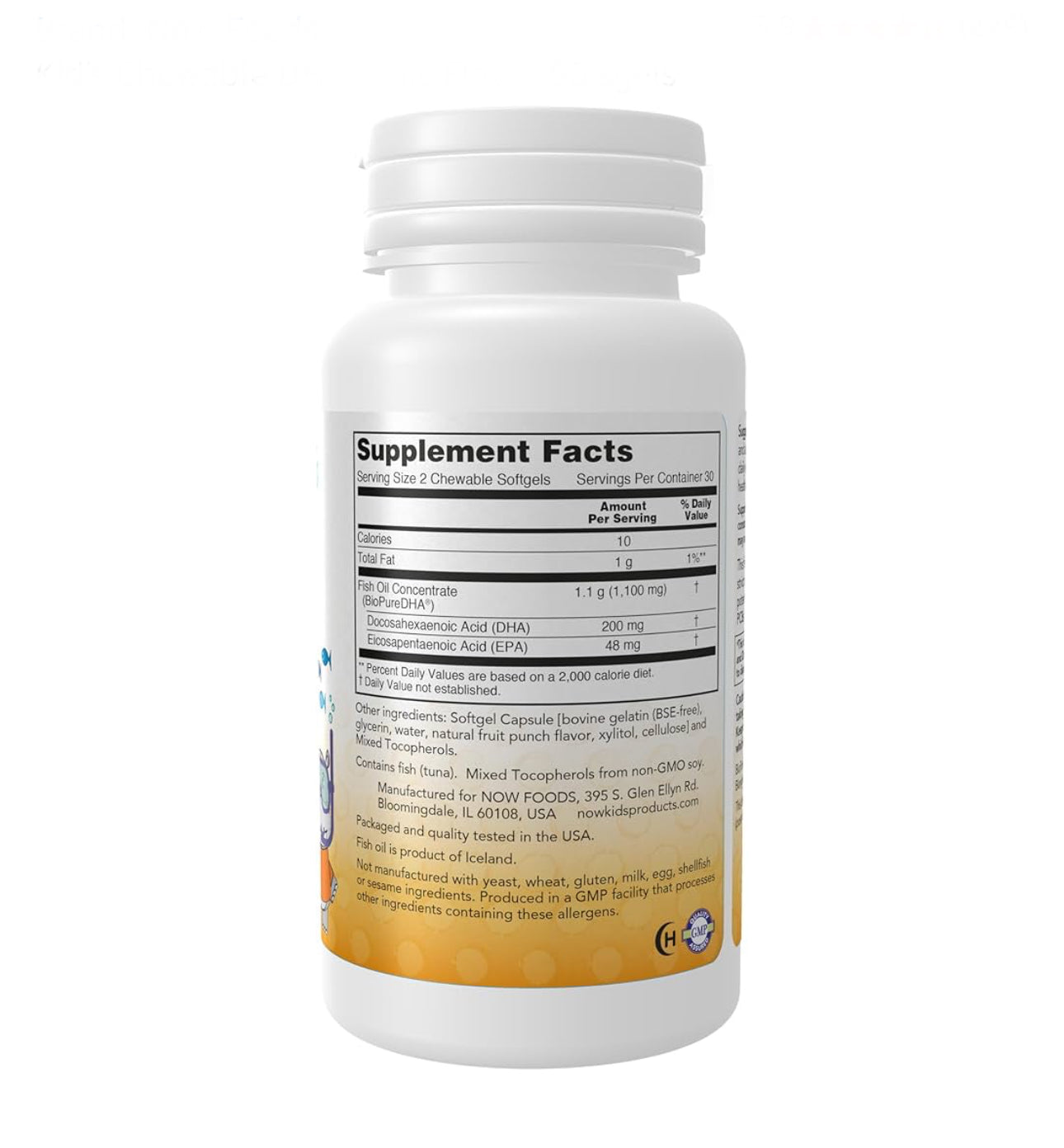 NOW Kid's DHA Fish Oil Chewables | DHA 100mg | Supports Brain Development | For Children Age 4 & up | Tasty Fruit Flavor ~ 60 Chewable Softgels; Exp 10/2027