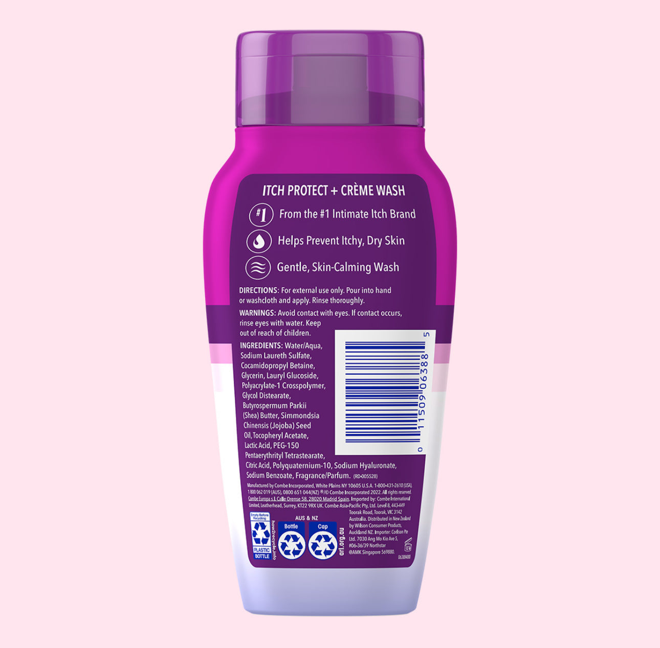 Introducing Vagisil's first crème wash designed to moisturize, soothe and protect itchy, dry skin. Our itch experts formulated Itch Protect+ Creme Wash for triple protection of chafed or itchy, dry intimate skin. Moisturizes with Hyaluronic Acid, one of skin's natural moisturizing factors, plus shea butter and jojoba. This rich, creamy wash formula works beautifully to help prevent dryness and itchy skin irritation, leaving skin feeling clean, hydrated and soothed. Gynecologist Tested.