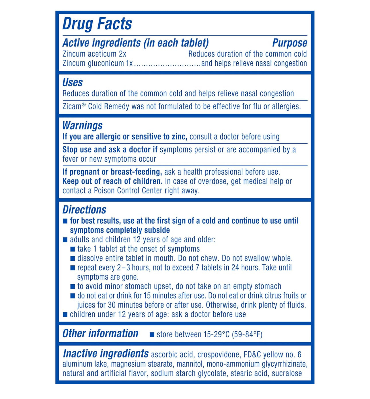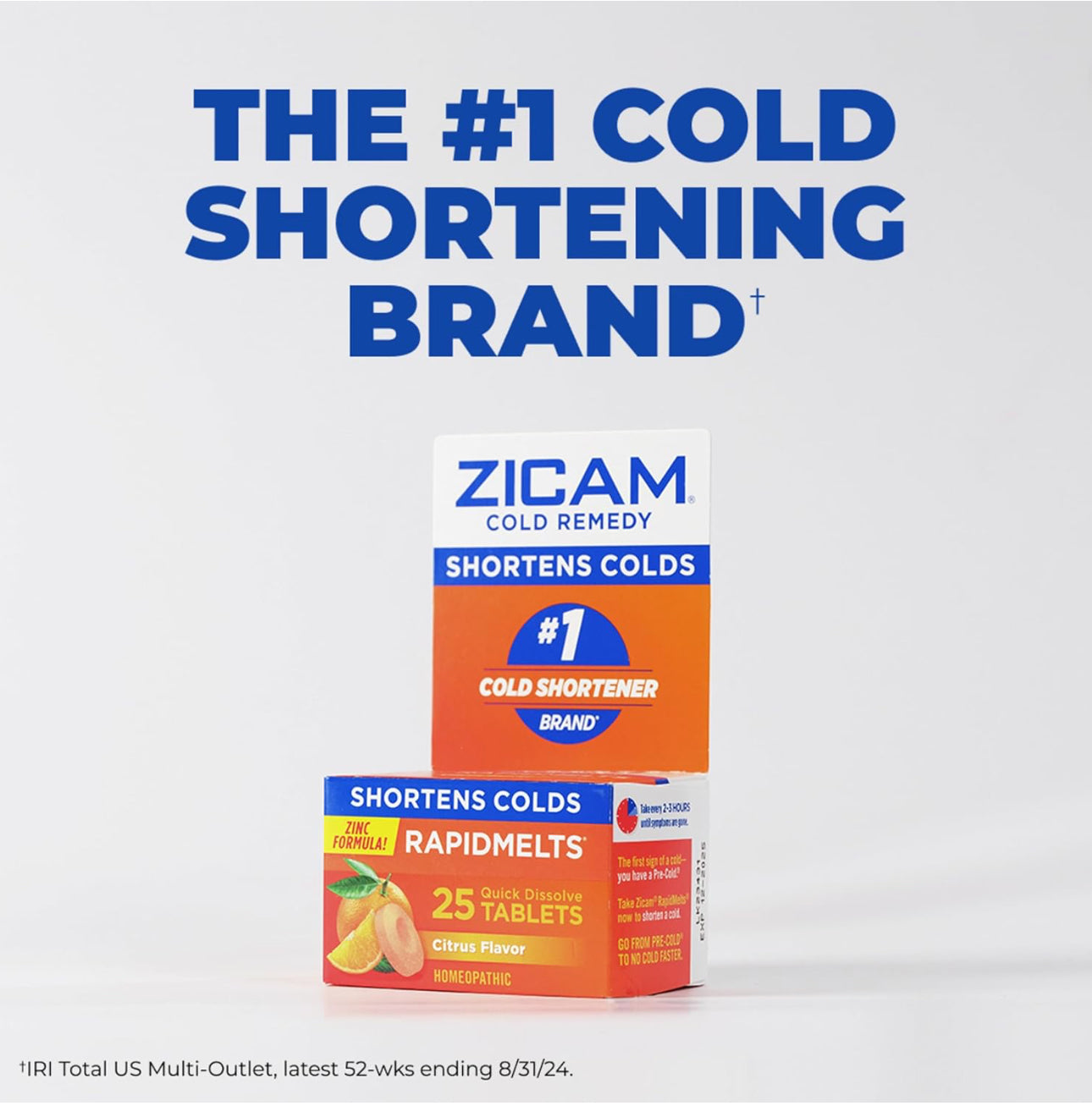 Shorten colds with the pre-cold medicine โ Zicam plus Elderberry Cold Remedy RapidMelts. Specially formulated with zinc, these quick-dissolve tablets are great-tasting and clinically proven to shorten colds when taken at the first sign, so you feel better, faster.