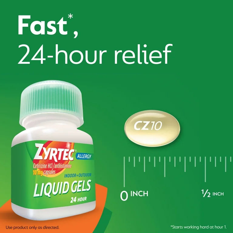 - Zyrtec 24 Hour Allergy Relief Liquid Gels for powerful relief of your worst allergy symptoms